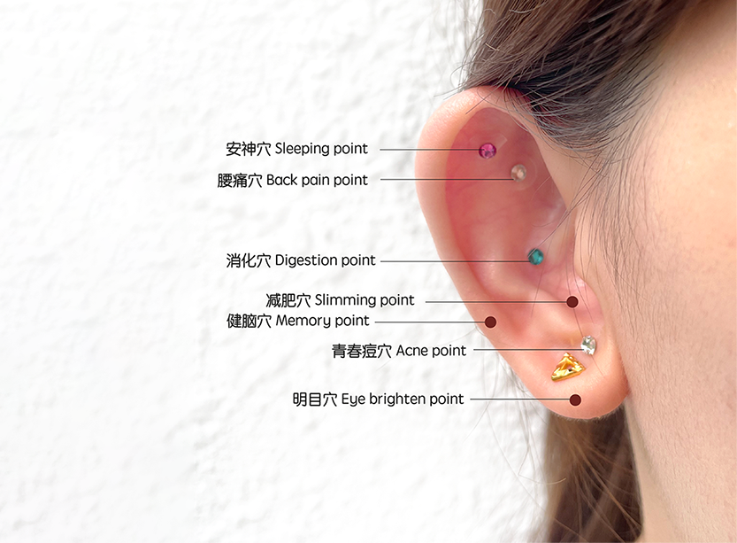 According to TCM theory, each acupuncture point on the ear corresponds to a specific organ or system in the body. By stimulating these points with ear seeds, we encourage smooth energy flow and restore balance to the related body system—facilitating natural healing and wellness.